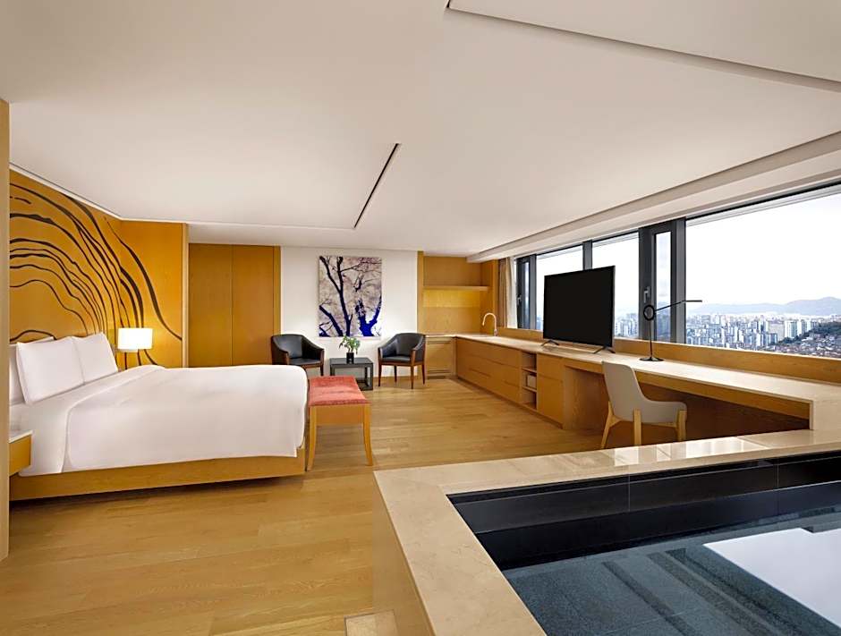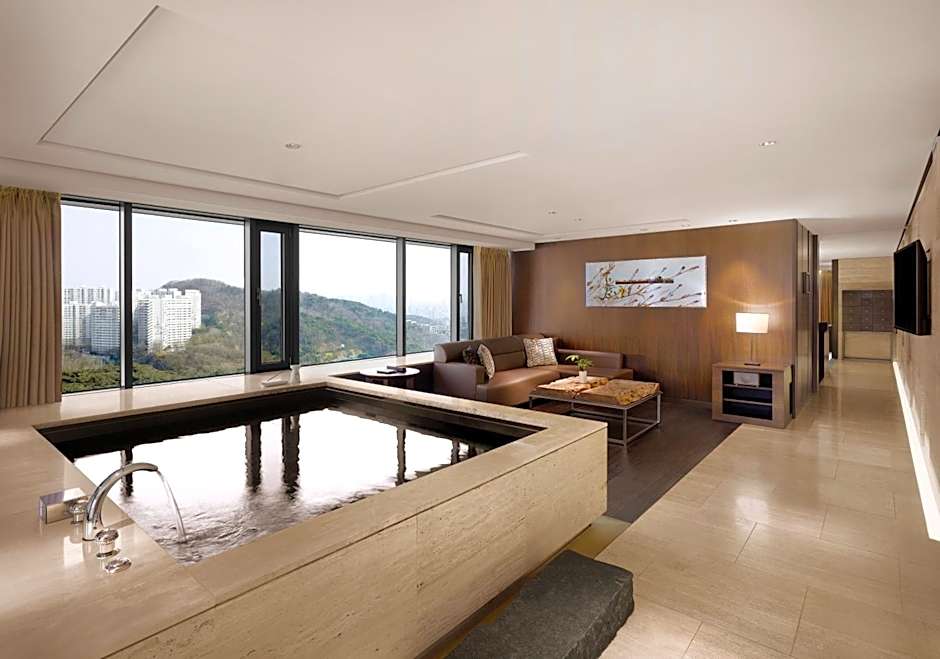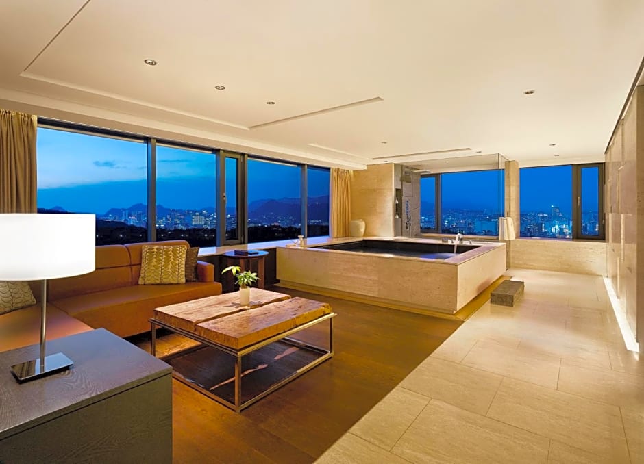 Boasting panoramic views of Mount Namsan and Seoul city, large suite features a separate living area with comfortable sofas. Located on floors 11 and 12, this suite features an in-room private pool.
